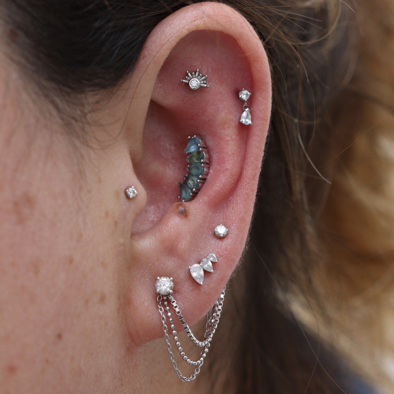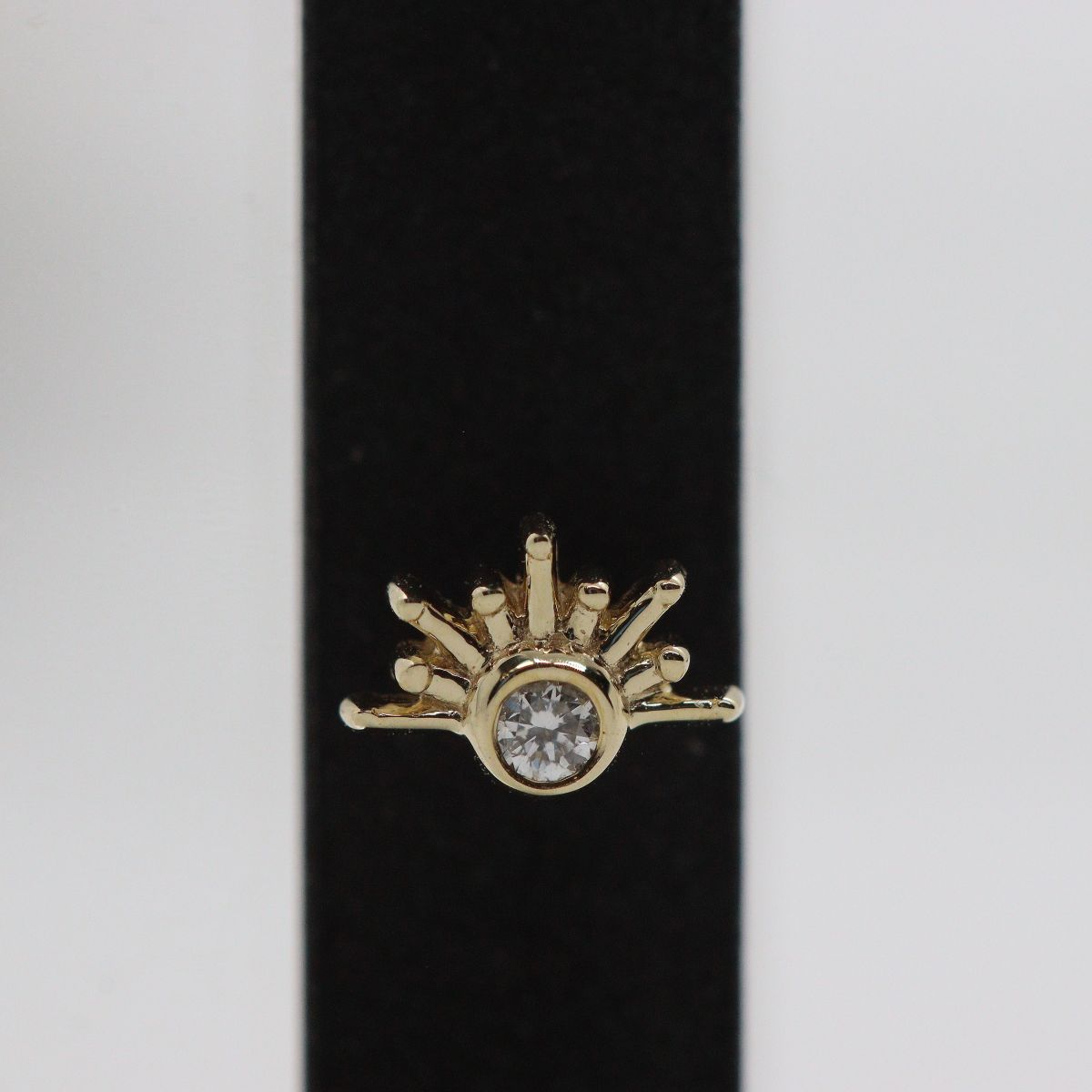 1,5mm witte diamant VS met asymmetrische stralen aan één kant van het sieraad.