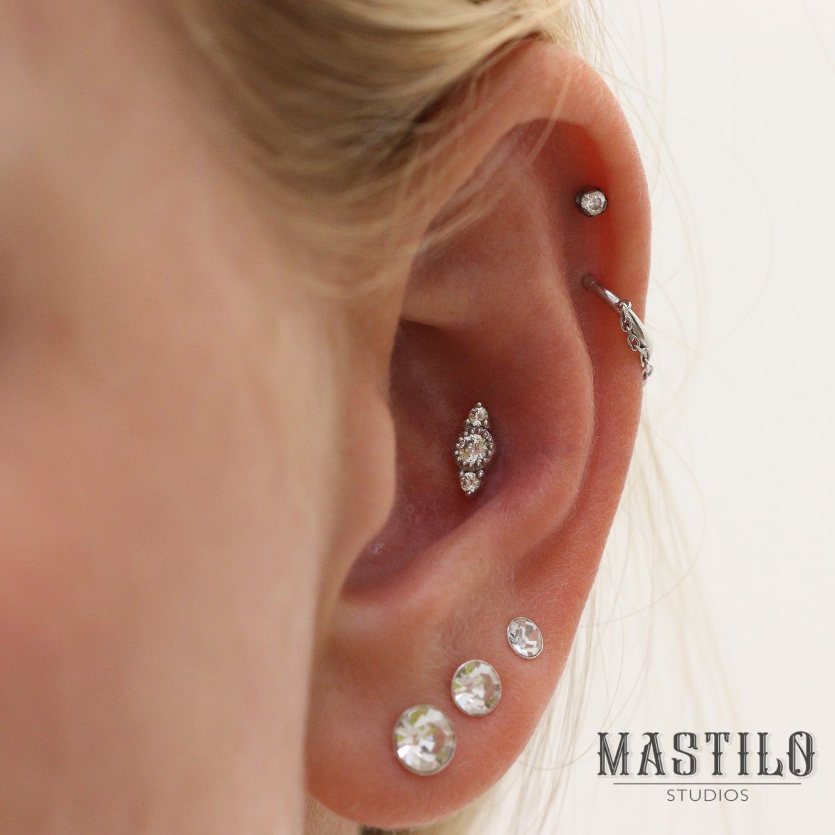 Lucien end 3.5x8mm 1 x 2mm White CZ 2 x 1.5mm White CZ 14k solid yellow gold.
