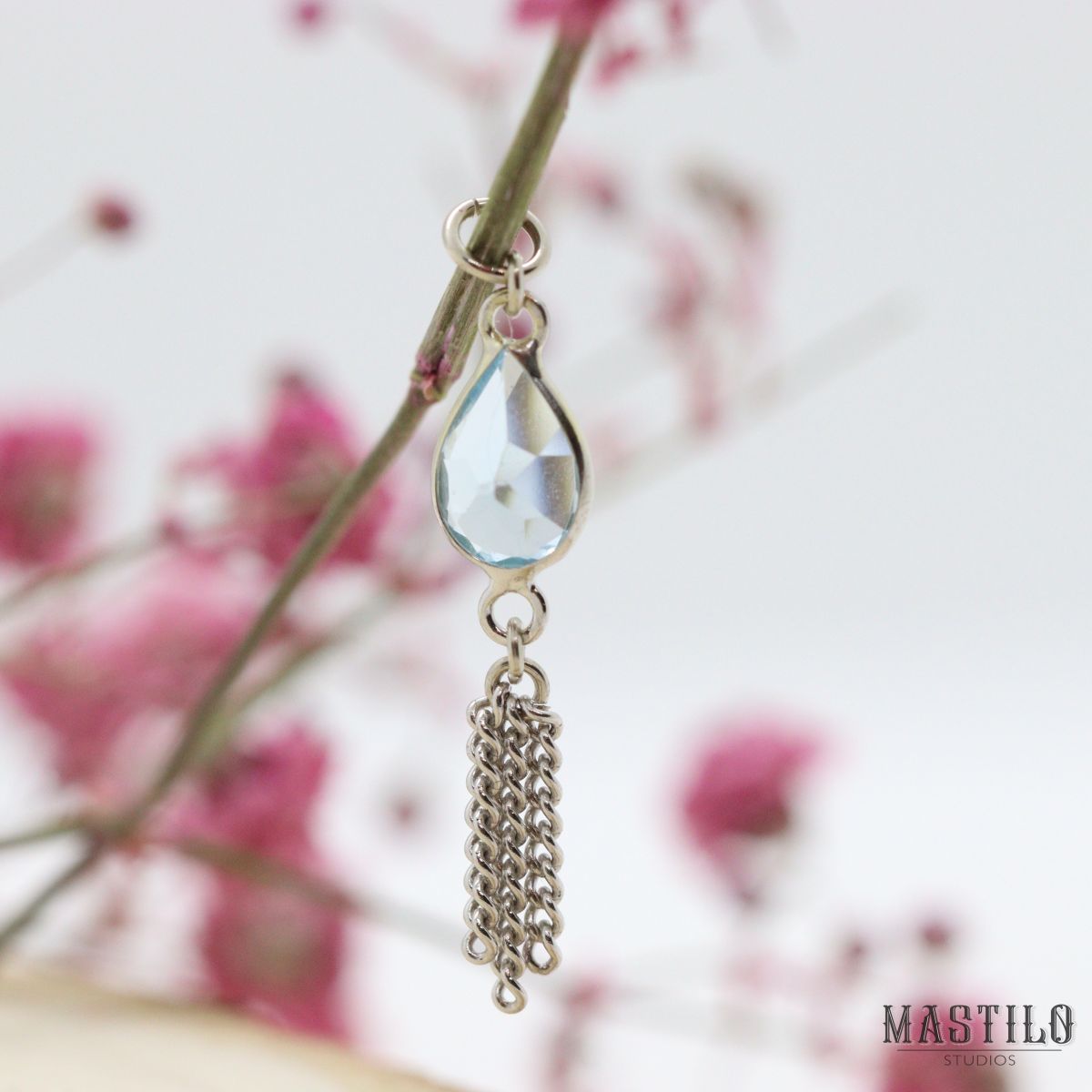 De Ombligo navel tassels van Hialeah Jewelry hebben een 5x7mm peervormige Blauwe topaas met een triple 1.1mm diamond-cut Curb chain met een totale lengte van 24mm.